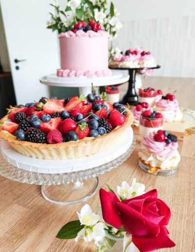 Każdy tort tworzę z dbałością o najmniejszy detal, łącząc estetykę z doskonałym smakiem i najwyższej jakości składnikami.