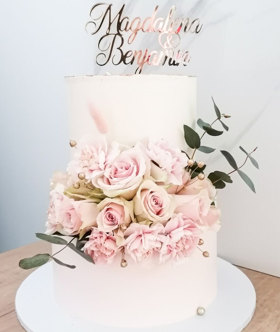 Dekorujemy po wcześniejszym uzgodnieniu, kwiatami, żywymi lub wykonanymi z papieru waflowego, makaronikami, topperem na